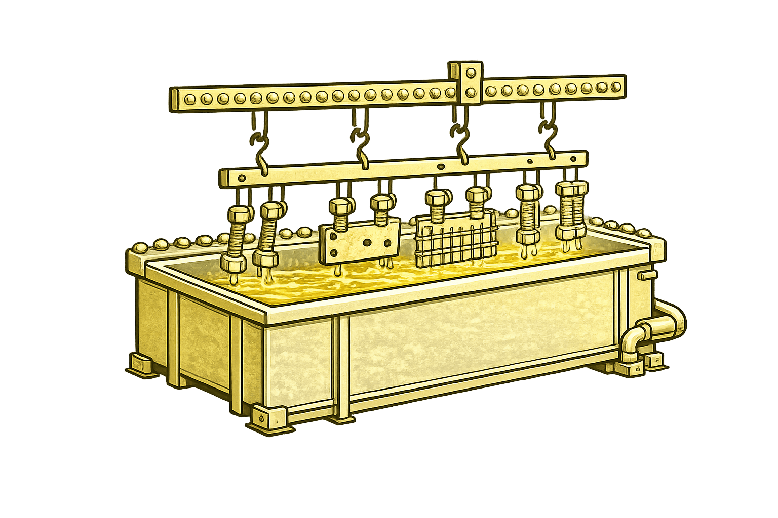 Sarı kaplama uygulaması, metal yüzeylerde dekoratif görünüm ve korozyon direnci sağlayarak endüstriyel kullanımlar için ideal bir çözümdür.
